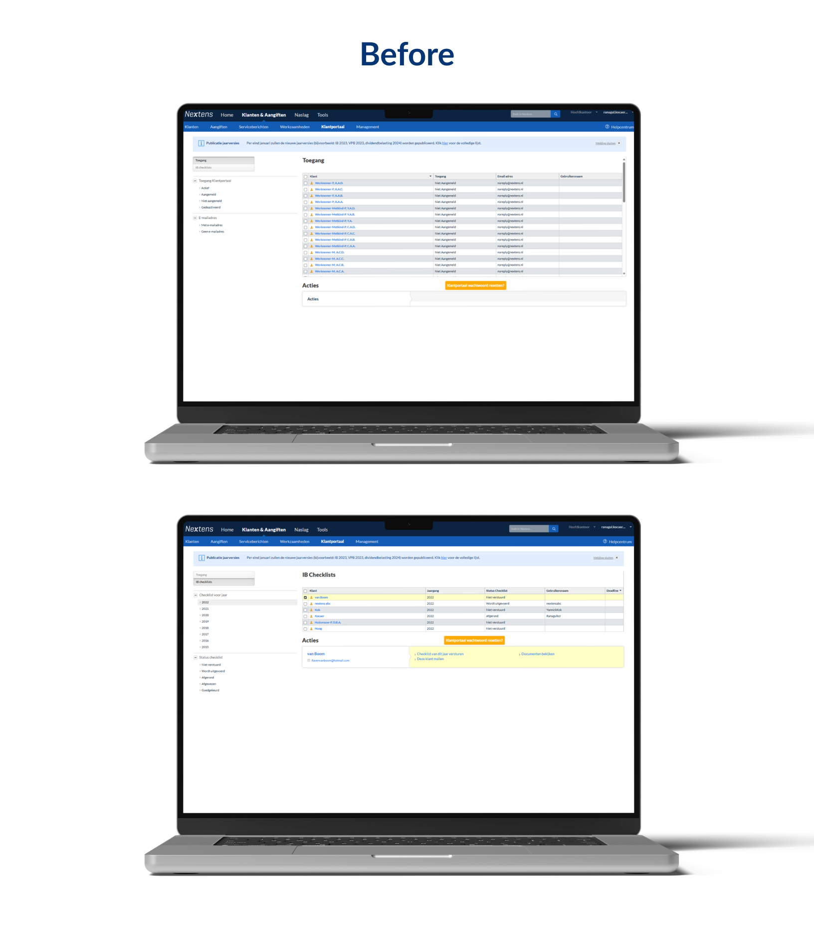 The klantportaal (customer portal) is the digital environment where tax advisors and accountants log in to manage their clients’ tax returns, documents, and communications.